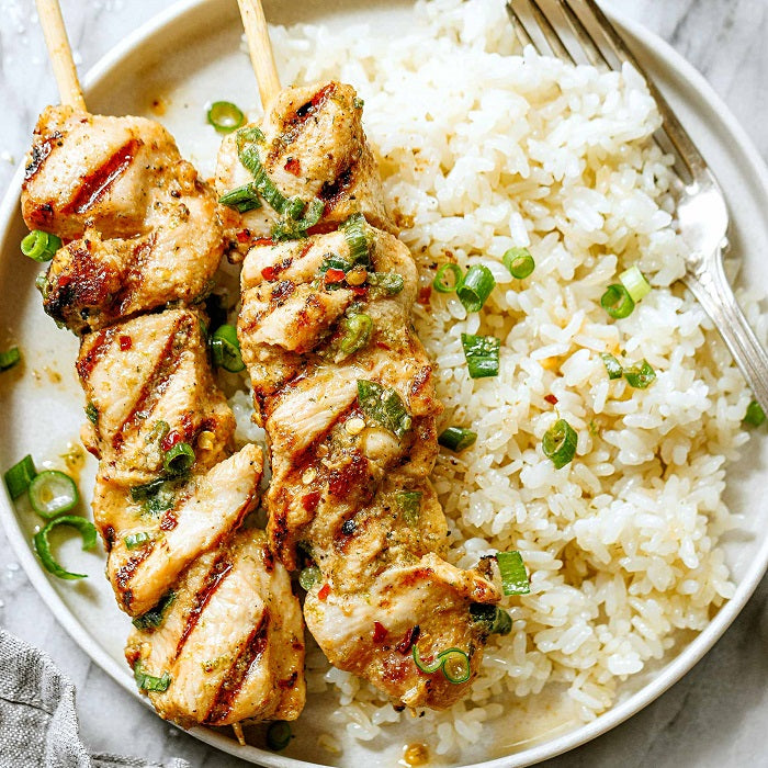 chicken breast, garlic, lime, black pepper, olive oil, baking powder, rosemary, garlic, salt, onion, lemon, orange, mustard seeds, veggie butter, habanero, honey, green onion