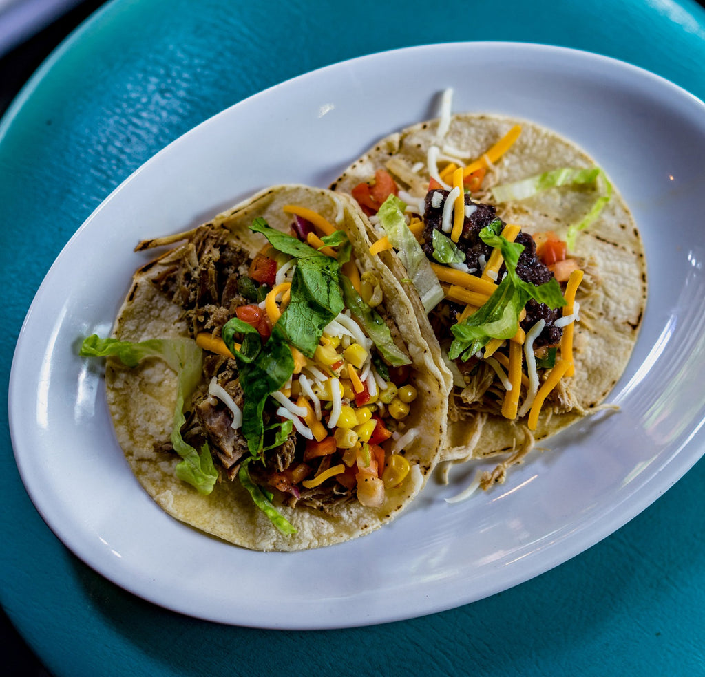 beef, cheese mix, corn, tomato, corn , or flour tortillas, red onion, lettuce, garlic, olive oil, lemon juice, salt, black pepper, mustard, mixed greens, honey, apple vinegar